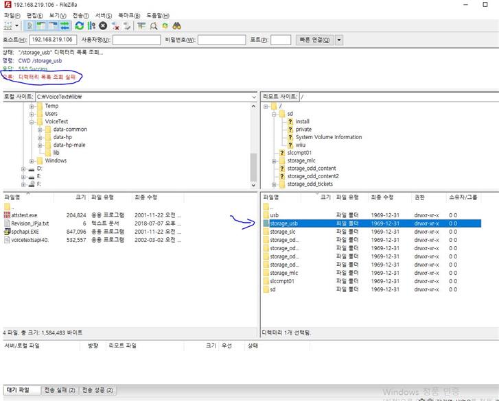 파일질라를 사용해서 storage_usb로 들어가라 하는데