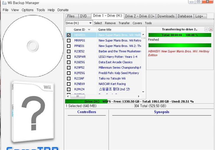 이동시킬 드라이버만 지정해 주면 WBFS상태로 잘 넘어갑니다...ㅡ.ㅡㅋ