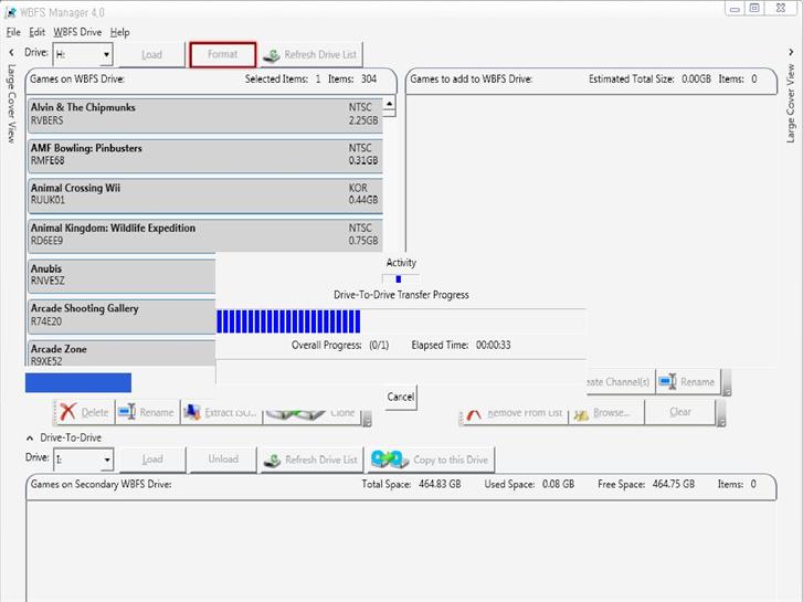 WBFS Manager 드라이버간 파일복사